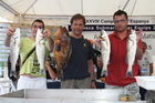 Francisco Javier Ribas, Miguel Galera y Oscar Cervantes con los sacos de su pesquera