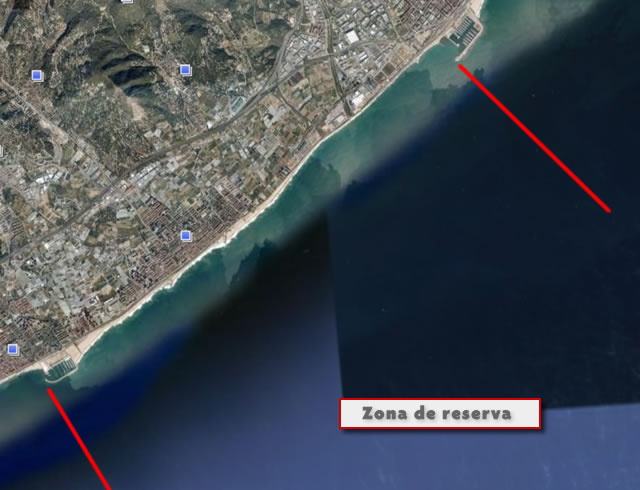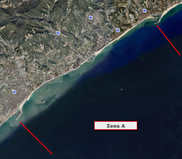 Puerto de Mataró: N41º 31.649' E002º 26.717' y con una enfilación por fuera N41º 29.666' E002º 28.122'