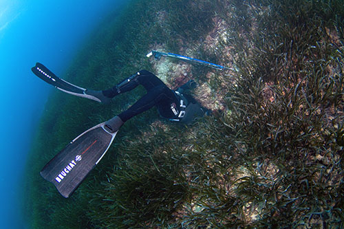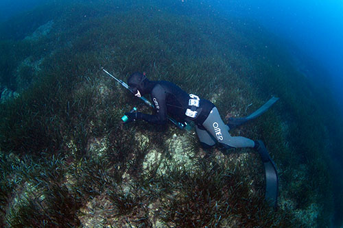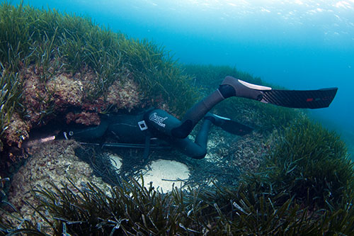 En la siguiente foto Pedro Carbonell en busca de capturas dentro de una grieta.
