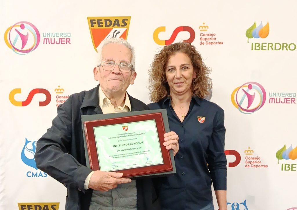 Al finalizar el acto, se hizo entrega del reconocimiento de «Instructor de Honor» a D. Manel Melchor Carpio por su extensa carrera de divulgación del buceo en la Federación.